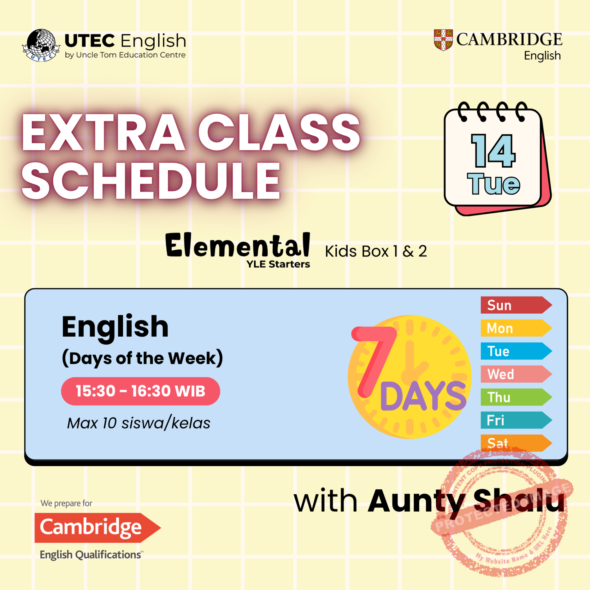 Students can say all of the days of the week, put them in order and mention what day it is.
