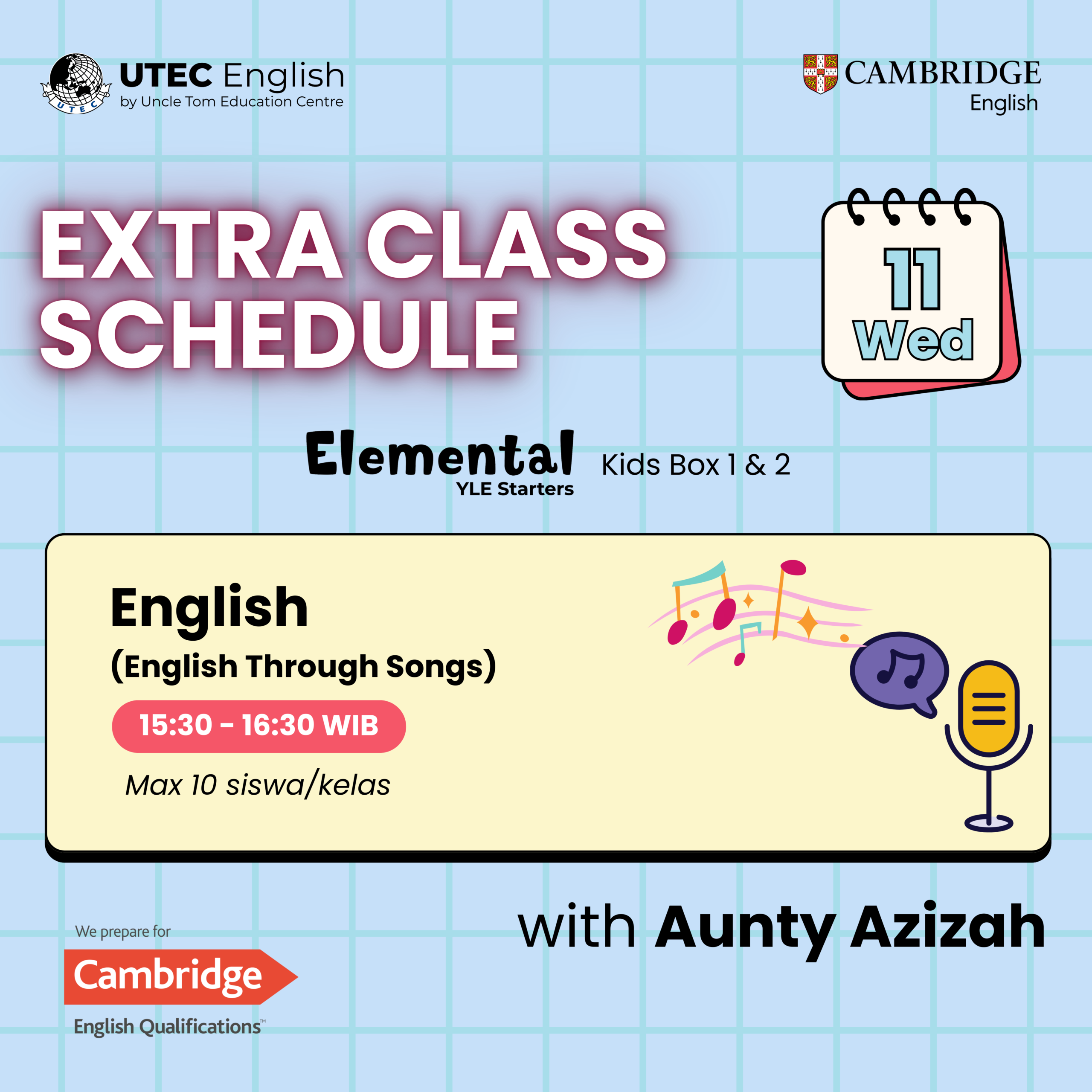 - Level: Elemental – YLE Starters (Kid’s Box 1 & 2).